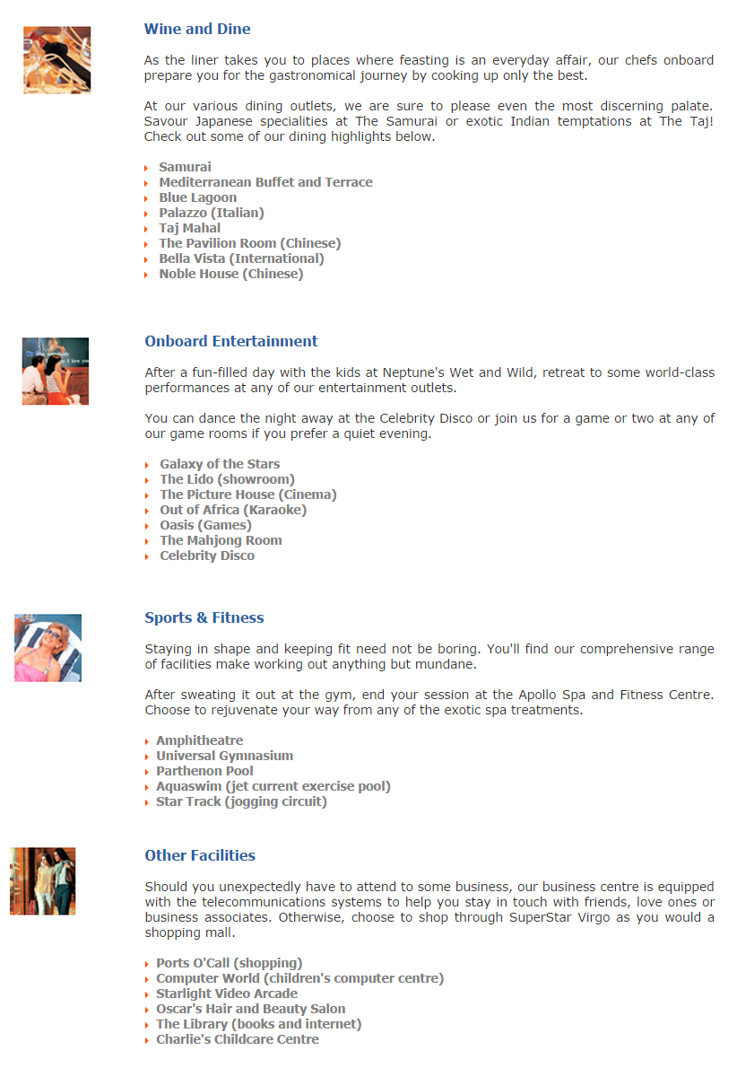 SuperStar Virgo offers so much more than first class dining and entertainment - it takes you to places where the sun, sea, people and culture blend colourfully well.